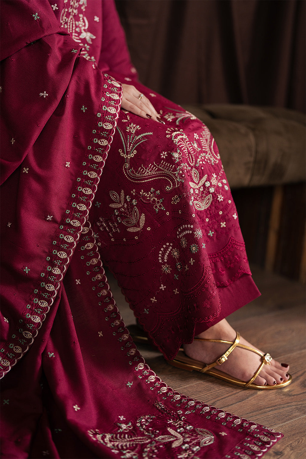 We are delighted to present Hoorain Designer Wear's premium sewing service, which is dedicated to delivering flawless sewing styles and exceptional quality. Our skilled team devotes careful attention to detail, ensuring that each dress is meticulously planned and sewn in accordance with the brand shoots showcased on our website. However, it is important to bear in mind that these shoots often incorporate design elements for illustrative purposes only, which may not necessarily be included in our dresses. Consequently, customers should expect minor variations.