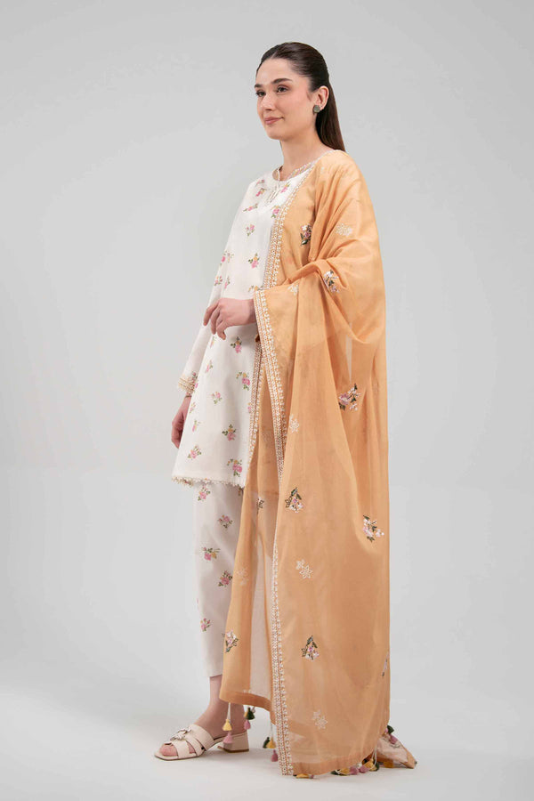Embroidered Solid Voile Dupatta: 2.5 Meter