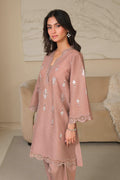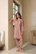 The soft charm of tea pink is reimagined in this elegantly tailored two-piece outfit, where femininity meets finesse. A delicate floral motif unfurls across the shirt, bringing a romantic rhythm to the sophisticated design. The borders and neckline are defined by laser embroidery on an air premium lawn fabric ideal for the summer season.