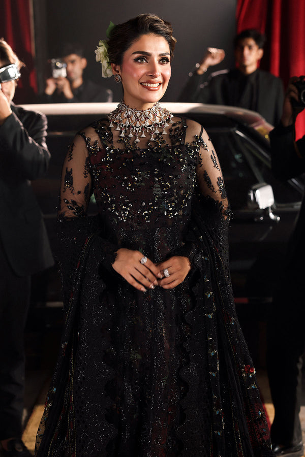 Embroidered & Hand Embellished Net Front Body Embroidered Net Back Body Embroidered And Hand Embellished Net Front Panels Embroidered Net Back Panels Embroidered Organza Front & Back Daman Border Embroidered And Hand Embellished Sleeves Embroidered Organza Sleeve Border Embroidered Organza Semi Stitched Dupatta Embroidered Silk Trouser Patch Plain Dyed Raw Silk Printed Raw Silk Inner.