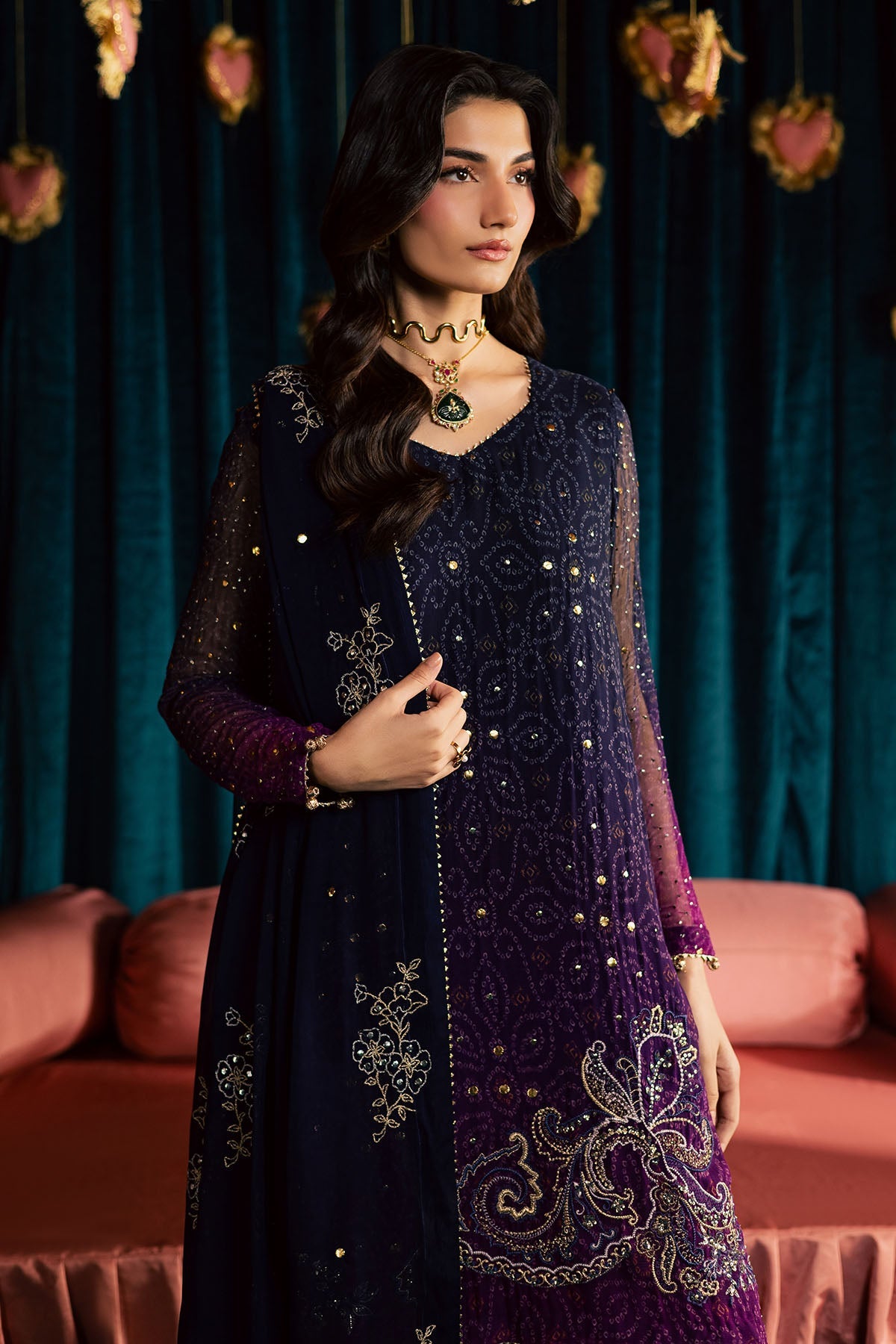 EMBROIDERED AND PRINTED CHIFFON WITH MUKESHKARI FRONT