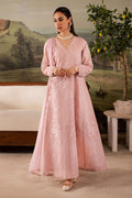 Embroidered Paper Cotton Frock Paired With Embroidered Chiffon Dupatta, Dyed Cotton Trouser And Inner