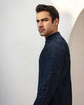 Description: Showcasing refined elegance, Amoz is a truly captivating piece. Cut from navy blue karandi, the kurta features a dazzling arrangement of resham embroidery, delicately highlighted with sequins. Paired with karandi trousers, this set exudes sophisticated splendour, making it a treasured piece of your festive wardrobe.