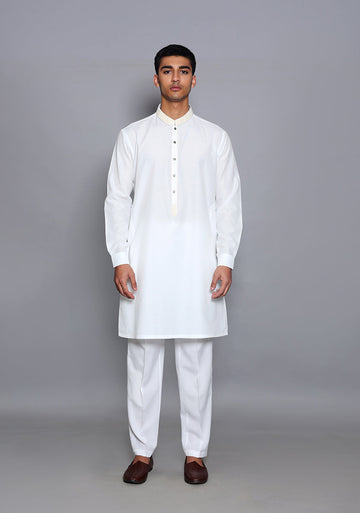 Pakistani Menswear | Amir Adnan - Basic Cotton Silk Cloud Dancer Slim Fit Embroidered Suit - Pakistani Clothes for women, in United Kingdom and United States