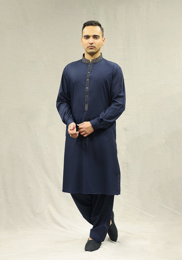 Pakistani Menswear | Amir Adnan - Classic Poly Viscose Salute Slim Fit Embroidered Suit