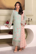 Chiffon Embroidered Front with Siquence Chiffon Embroidered Back Chiffon Embroidered Sleeves Organza Embroidered Border (Front & Back) Organza Embroidered Sleeves Border Chiffon Embroidered Dupatta Rawsilk Trouser Organza Trouser Border.