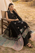 Dyed Black Organza Embroidered Neck 3D Flowers 02 Pieces
