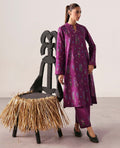 A purple long printed shirt adorned with colorful floral bunches, paired with matching purple trousers featuring a wavy floral border at the hem. This stunning two-piece creates the perfect ensemble for an effortlessly chic everyday look.