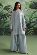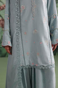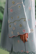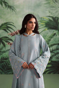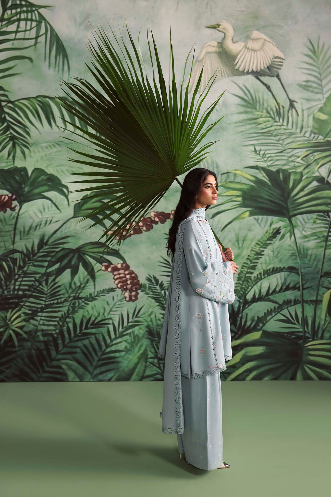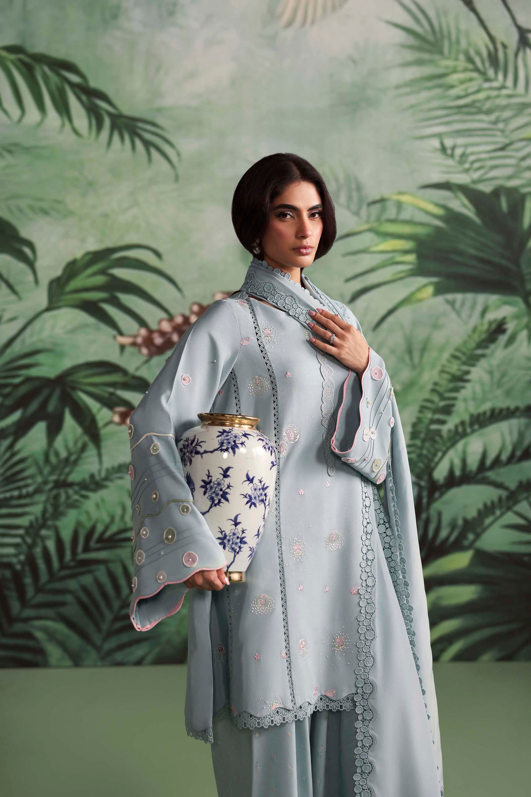 A charming baby blue heavy silk ensemble featuring elegant embroidery on the shalwar, shirt, and dupatta. Its soft hue and refined detailing make it perfect for a variety of occasions. A timelessly beautiful 3-piece suit.