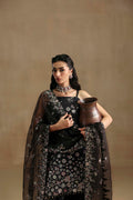 THIS ARTICLE INCLUDES: EMBROIDERED FRONT ON DYED RAW SILK FABRIC 32" 01 2. EMBROIDERED BACK ON DYED RAW SILK FABRIC 32" 01 3. EMBROIDERED SLEEVES ON DYED RAW SILK FABRIC 1-M 01 4. EMBROIDERED DUPATTA ON DYED ORGANZA 2.5 M 01 5. EMBROIDERED DUPATTA PALLU BORDER ON DYED ORGANZA 2M 01 6. EMBROIDERED TROUSER ON RAW SILK FABRIC 2.75 M 01 7. EMBROIDERY TROUSER BORDER ON DYED ORGANZA 52"01 32" 01