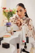 Where bold meets beautiful, Dusky Dreams is a contemporary three-piecе ensemble featuring a sand-toned short shirt, adorned with dramatic black embroidery all over the front and an accentuated neckline. Paired with modern-cut Trousers and a Textured Net Dupatta for a look that redefines eastern elegance.
