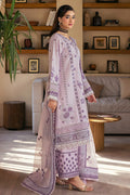 Wrap yourself in summer’s softest hues with Celeste, a misty lilac masterpiece adorned with delicate embroidery and intricate lace details. Featuring an embroidered lawn shirt with lace-trimmed sleeves, cambric trousers, and a textured net dupatta with embroidered borders on all four sides, this ensemble is where style meets elegance.