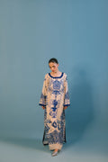 Gorgeous digital print long lawn caftan style shirt with scallop detailing on neckline and sleeves. Paired with lawn printed capri pants.