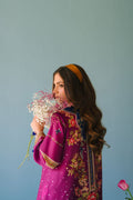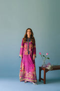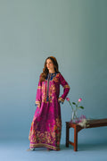 A gorgeous digital print lawn long caftan style shirt with tassel detailing on the neckline. Sleeves have tassels and stone hangings. Paired with a pure plain magenta lawn capri pants.