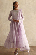 This stunning lavender pishwas in flowy embroidered chiffon is a true blend of elegance and grace. The gorgeous hand embroidery on the neckline and sleeves, beautifully hemmed with an embroidered organza border adds a refined touch to the design.