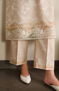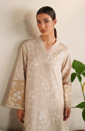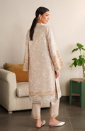 Lumen is a cozy winter slub khaddar two-piece in soft beige with delicate white floral and paisley prints. Subtle embroidered borders add a refined touch, making it warm and effortlessly stylish.
