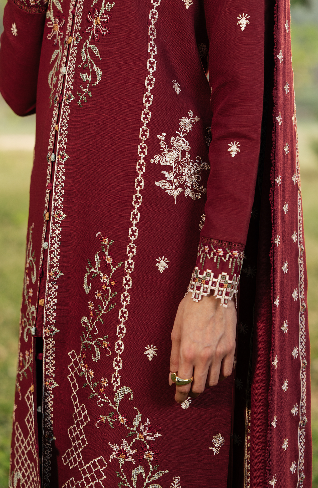 Embroidered Shirt Back & Sleeves (Slub Khaddar) 02 meters