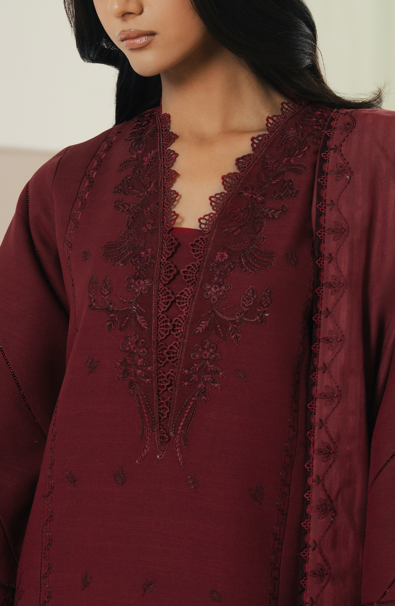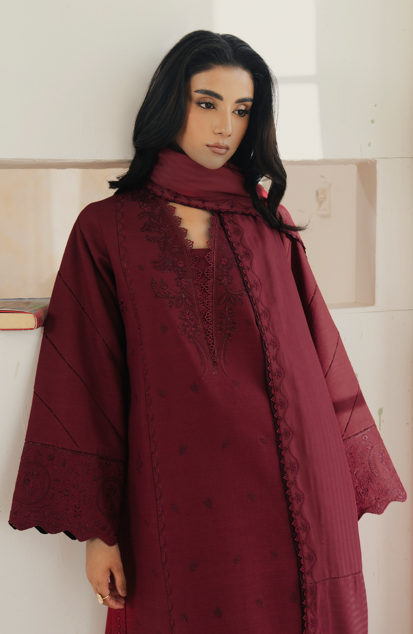 Embroidered Hem & Chalk Border (Slub Khaddar) 2.30 meters