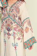 This A-line shirt in an off-white hue in etro style gives a classic chic. Its flowing silhouette exudes understated elegance, while intricate ethnic details add a touch of cultural charm. Elevate your style with this ethereal creation that effortlessly combines tradition and sophistication. Pants can be added seprately.