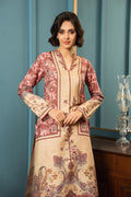 This Shamaeel's outfit features a digitally printed shirt adorned with intricate floral and paisley patterns in warm pink and beige tones. The design creates a luxurious look, maintaining a lightweight and comfortable feel. Paired with plain pink rose-colored pant, it offers a refined yet effortless style perfect for summer all-day wear, perfect for Eid, casual outings, daytime events.