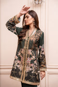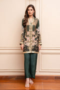 Make a majestic statement with our digitally printed emerald green shirt! This stunning front-open design exudes regal elegance, perfectly complemented by intricate tilla outlines. Paired with a matching pant for a cohesive and sophisticated look, this ensemble is sure to turn heads.