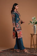 This mid-length shirt outfit is a perfect fusion of traditional craftsmanship and modern elegance. The shirt features a classic Baroque pattern, intricately printed with fine details that exude luxury. The meticulously designed neckline adds a sophisticated touch, elevating the overall look. Paired with bootleg pants, their flowing silhouette beautifully complements the intricate patterns of the shirt, with a subtle flare that adds drama and grace. A delicate, detailed dupatta with soft patterns and flowing edges completes the ensemble, adding a touch of romance while framing the face beautifully. This outfit is a stunning tribute to timeless style, ideal for formal events or special occasions.