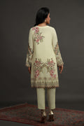 This soft pastel yellow ensemble radiates timeless grace, adorned with intricate floral motifs and symmetrical garden-inspired patterns. Accents of Mughal architectural elements and finely detailed borders add a touch of regal sophistication. Paired with straight trousers and delicate accessories, it’s an effortlessly elegant choice for daytime festivities and summer gatherings.
