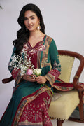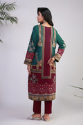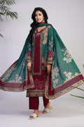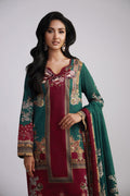 Effortlessly blending simplicity with sophistication, this maroon and green ensemble features a fully printed shirt with embroidered neckline, paired with matching solid trousers for a seamless look. The soft lawn dupatta, detailed with maroon-accented borders, adds a subtle contrast that enhances the overall elegance—perfect for understated summer style.