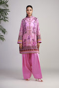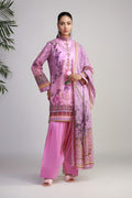 Effortlessly chic in shades of pink, this ensemble features a fully printed shirt paired with a soft lawn dupatta, both adorned with delicate floral motifs. Finished with a solid pink farshi shalwar, this outfit offers a seamless blend of comfort and elegance, perfect for everyday sophistication.