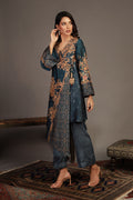 Crafted from luxurious sheesha silk, this piece features gold tila outlines with zardozi and resham work, offering timeless elegance. This Stunning pieces comes with a straight pant.
