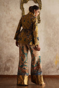 Ottoman-inspired jacket with bellbottom and inner, printed on pure silk, showcasing stunning embroidered floral bunches and hand-touching details, celebrating the beauty of heritage fashion.