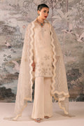 This stylish short organza shirt features delicate embroidery accented with silver sequins, creating a sophisticated look. The sleeves are designed with a unique transparent sequin combination, adding a modern touch to the ensemble. Paired with a plain raw silk trouser, the outfit offers a balanced contrast. The accompanying organza dupatta is adorned with silver sequin work throughout and finished with embellished borders, completing the ensemble with elegance.