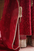 Fire red, double pants (silk churidaar and raw silk lehenga) with contemporary embroidery border.