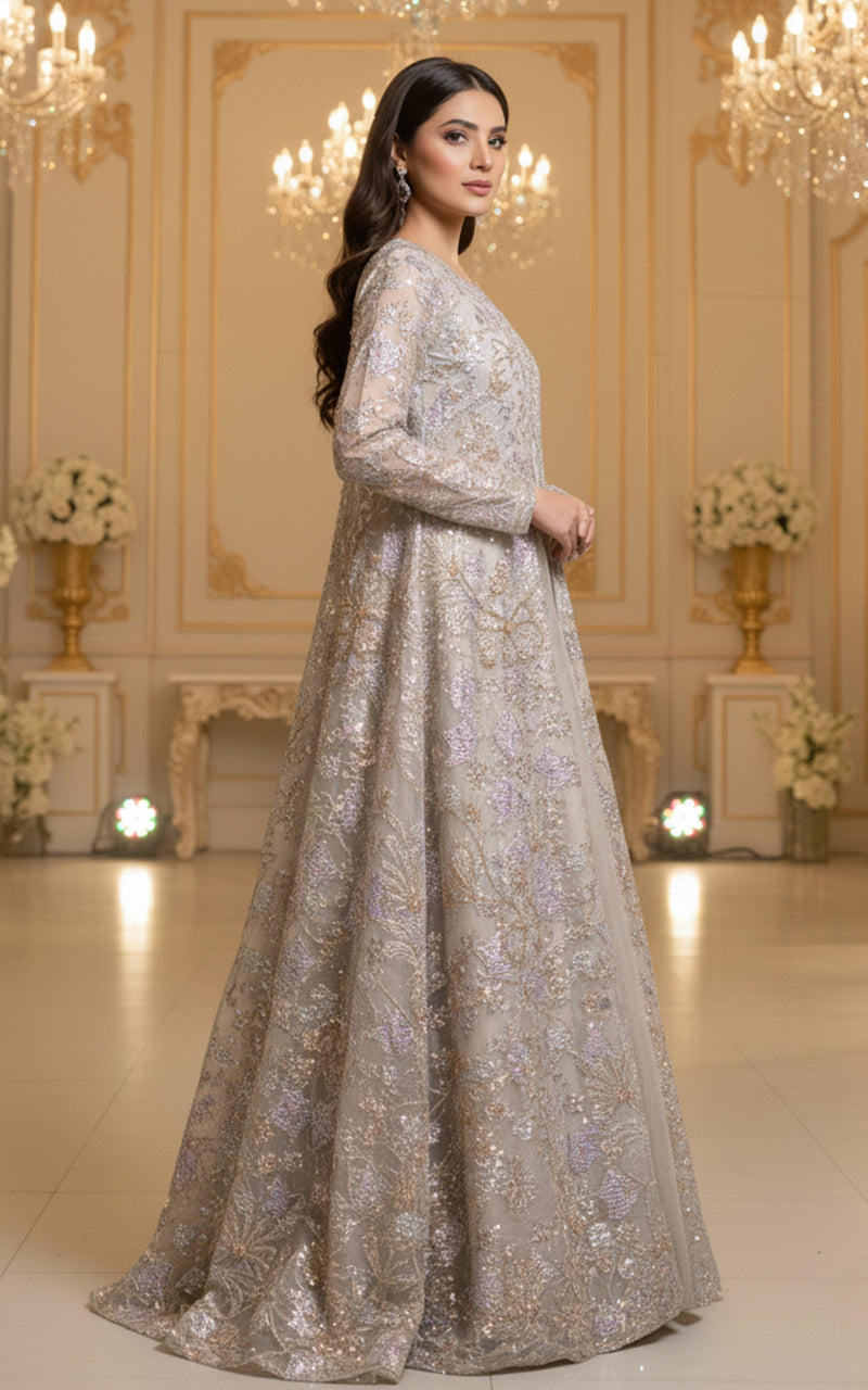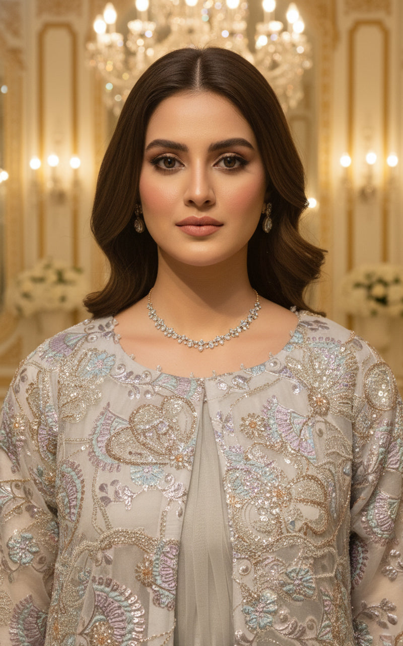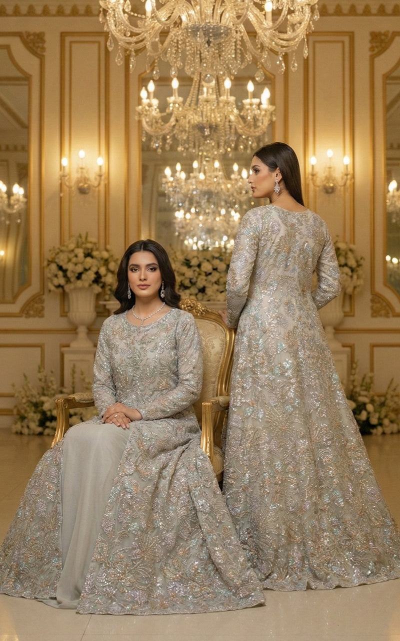 Acknowledging our Pakistani cultural background, we deeply appreciate the value of modesty. Therefore, we may make adjustments to certain design elements to comply with modesty standards. Notable modifications include transforming low backs into traditionally styled regular backs, replacing drop shoulders with normal shoulders, concealing exposed stomach areas, and attaching sleeves to sleeveless dresses.