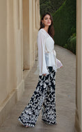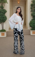 The stunning chiffon top with modern cut, creating a look that is both timeless and contemporary. Complemented by our beautifully crafted embroidered pants, this ensemble exudes sophistication and style.