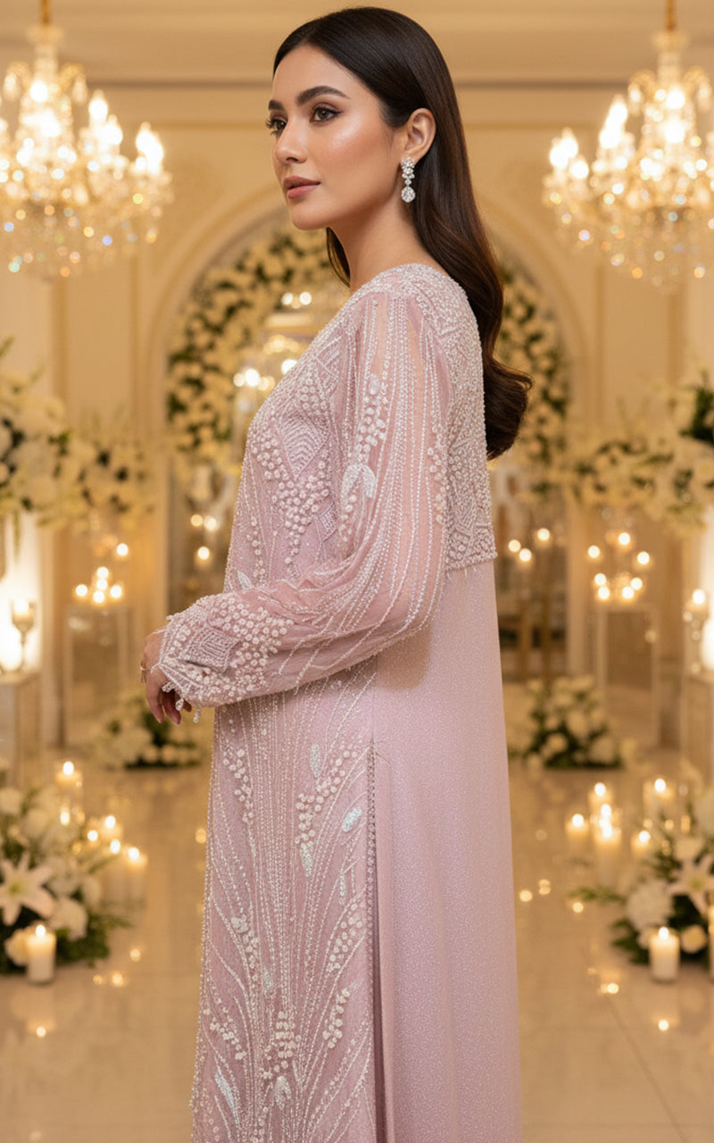Acknowledging our Pakistani cultural background, we deeply appreciate the value of modesty. Therefore, we may make adjustments to certain design elements to comply with modesty standards. Notable modifications include transforming low backs into traditionally styled regular backs, replacing drop shoulders with normal shoulders, concealing exposed stomach areas, and attaching sleeves to sleeveless dresses.