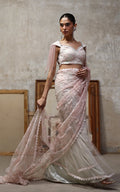 Step into the world of modern luxury with the net embroidered blouse with saree is a true work of art, embellished with crystals and sequins that shimmer and shine with every movement. The addition of tassels gives this outfit a playful and elegant touch.