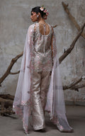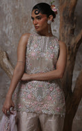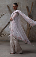 Our exquisite Organza Embroidered Shirt, This stunning piece features intricate floral embroidery showcasing mesmerizing cutwork details and celestial mirrors embellished with sequins and tassels that adds a touch of artistry to your ensemble, while the accompanying floral embroidered dupatta enhances its charm.