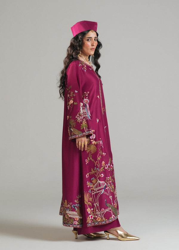 Crafted from pure raw silk, this outfit radiates timeless luxury with its natural sheen and soft texture. The embroidery takes inspiration from the Darvash old era, reimagined with a touch of modern elegance — blending heritage artistry with contemporary sophistication. A perfect balance of tradition and style, this piece is designed to make a graceful yet bold statement.