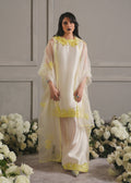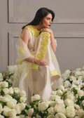 This ensemble exudes elegance with a refreshing modern vibe. The soft ivory canvas is brought to life with bold yellow embroidery that creates a striking contrast, while a delicate, sheer overlay adds a contemporary, ethereal touch. The intricate needlework with pearls and cut dana makes it an expression of modern refinement veiled in timeless grace. Paired with a pure silk Farshi shalwar and an organza dupatta finished to perfection, striking the ideal balance between chic and timeless.