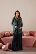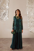 An ethereal organza jacket, beautifully embroidered and delicately hand-embellished, paired with a crushed raw silk long dress. Designed with a graceful double-layer silhouette.