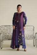 A classy and delicate silk long shirt intricately detailed with hand embellishments paired with plain trousers and a printed chiffon dupatta.