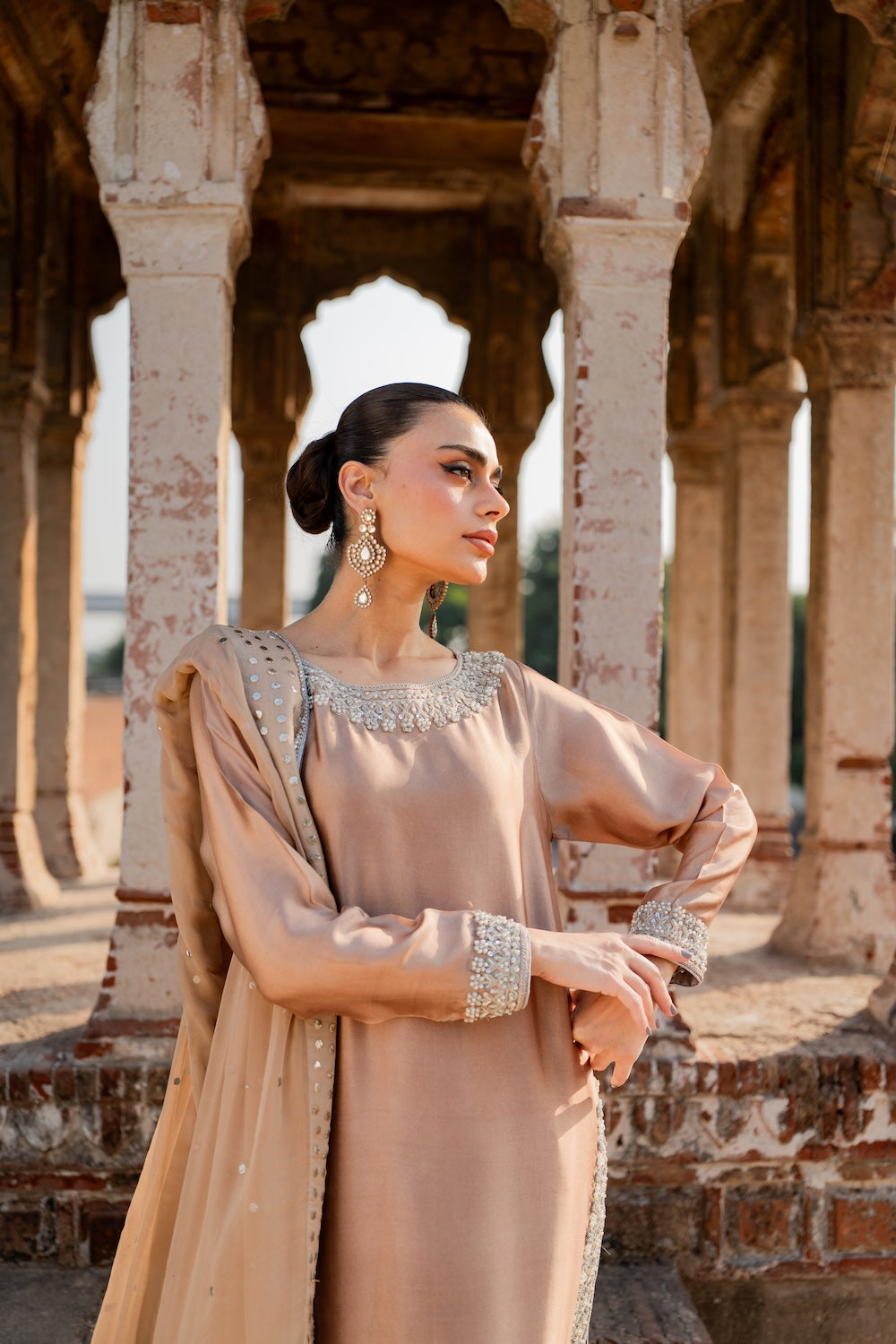 Acknowledging our Pakistani cultural background, we deeply appreciate the value of modesty. Therefore, we may make adjustments to certain design elements to comply with modesty standards. Notable modifications include transforming low backs into traditionally styled regular backs, replacing drop shoulders with normal shoulders, concealing exposed stomach areas, and attaching sleeves to sleeveless dresses.