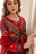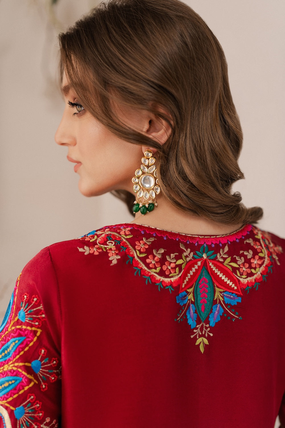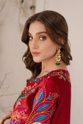 Putting our best foot forward for the woman who finds her spot in every celebration, a poetic ensemble in flaming hot maroon color. This splendid rawsilk piece showcases timeless crafts with handcrafted threadwork and applique detailing. It’s that ONE stunning ensemble in your wardrobe that you can have as a keepsake.