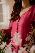 Draped in a breathtaking blend of haute plum, this ensemble features a seamless fusion of tonal embroideries, meticulously woven into the fabric. The delicate floral motifs embellish the overall outfit, adding a touch of refined femininity. Complemented by straight pants, this ensemble is designed to be a striking statement piece, elevating the beauty and allure of the festive season.