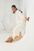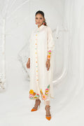 Make a statement with this Pure Raw-Silk ensemble. Our signature Box Cut Shirt featuring intricate Resham Threadwork, Cutwork Applique and muti-color hand-made buttons details.