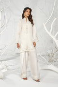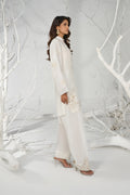 Pristine White Formal Shalwar Kameez adorned with Intricate Resham Thread and Cutwork. Featuring Handmade 3D Flowers and Swarovski Crystal Embellishment. Complete the look with a 3D Flower embellished Pure Organza Dupatta to complete the look (Optional).