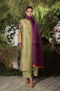 Olive Formal Shirt featuring Intricate Resham Cutwork Embroidery, finished with Organza and Pleats Detailing. Paired with Matching Izaar.