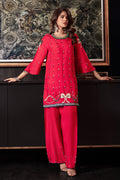 Hot Pink Formal Shalwar Kameez featuring heavy Swarovski Crystal Work and Intricate Hand Embroidery Of Resham, Zardoze, and Cutdana Work.