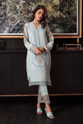Wedgewood Formal Chiffon Shirt featuring Intricate Resham Cutwork Embroidery and Fomral Zaroze, Cutdana and PearlWork. Finished with our Signature Leather Work, Organza and Pleats Detailing. Paired with Embroidered Organza Detail Pants To Complete The Look.